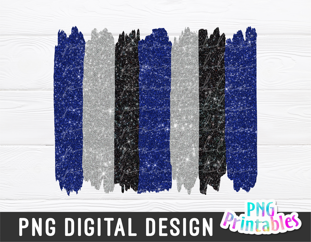 Blue Silver Black Brush Strokes | PNG Sublimation File
