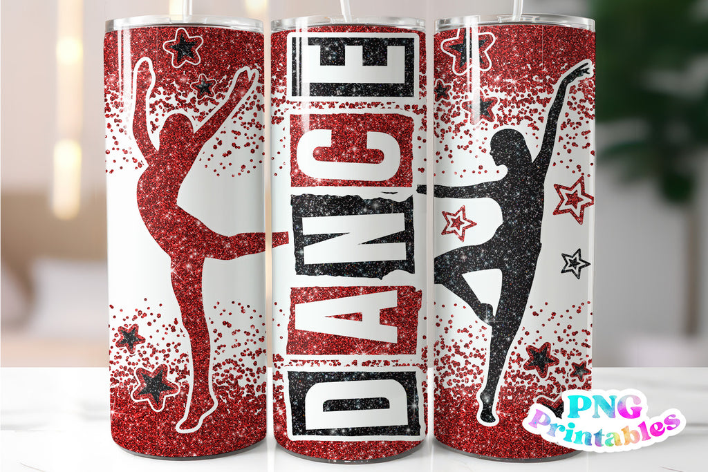 Dance Glitter 20 oz Skinny Tumbler Red and Black | PNG Sublimation File