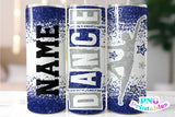 Dance Glitter 20 oz Skinny Tumbler Royal Blue and Silver | PNG Sublimation File