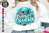 12 color versions of Football Grandma airbrushed design - yellow, orange, green, mint, blue, navy blue, light blue, purple, pink, red, maroon, gray.