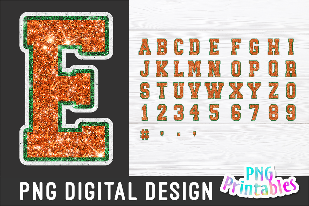Glitter Alphabet Orange, Green and White | Sublimation PNG