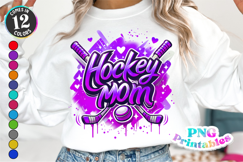 Includes 12 color versions of Hockey Mom airbrushed design