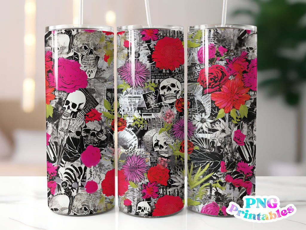 Punk Rock Floral 20 oz Skinny Tumbler png Design - Sublimation Tumbler Wrap - png File - Straight and Tapered - Digital Download