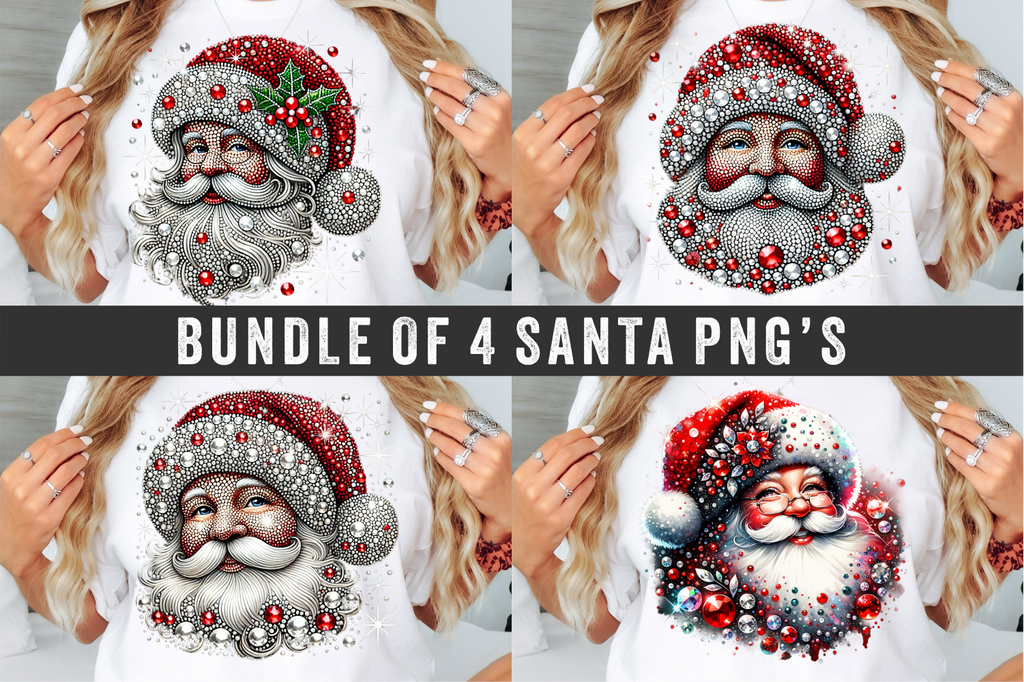 Christmas Santas with rhinestones and glitter, bundle of 4 png files. printable png file