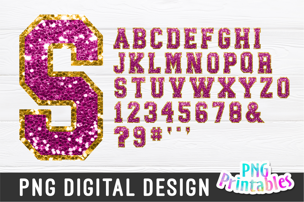 Sequin Sport Alphabet png Hot Pink and Gold