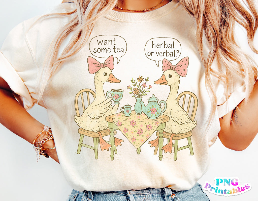 Want some tea funny goose, printable png file.
