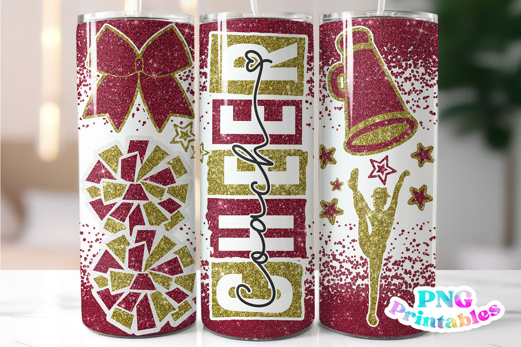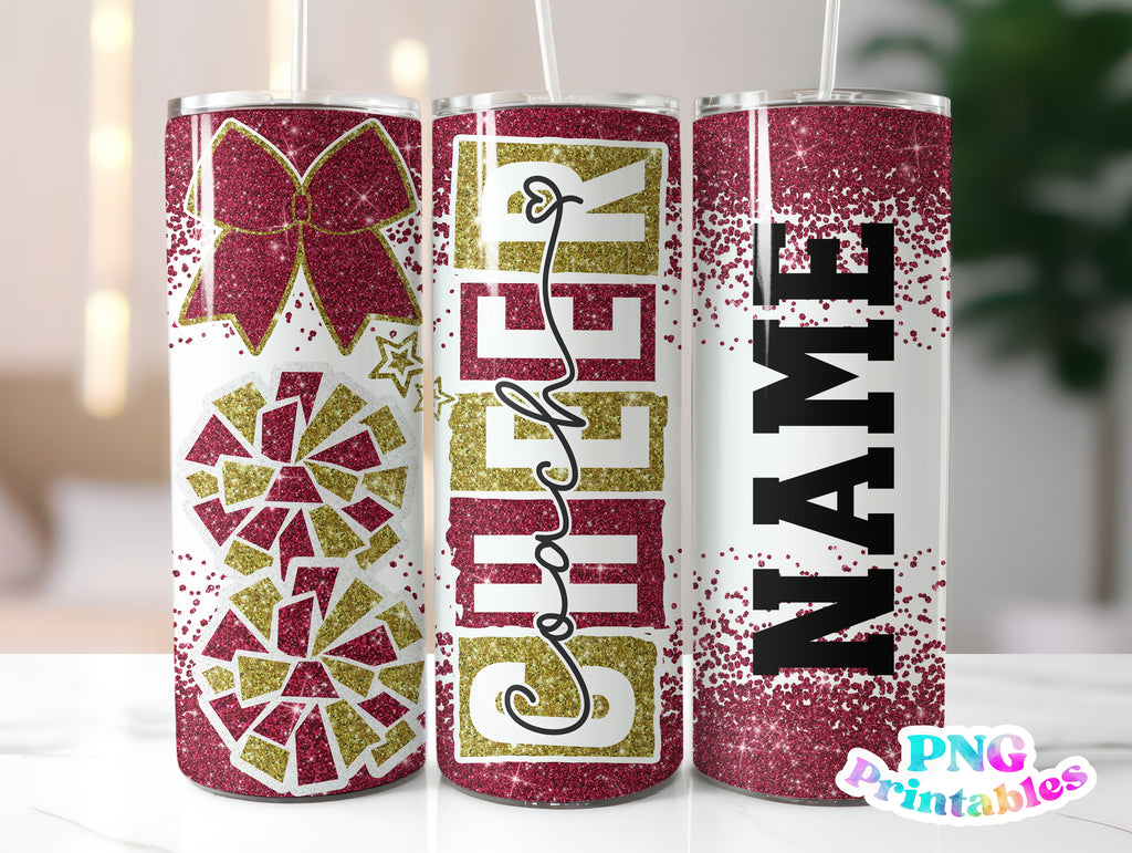 Cheer Coach Glitter 20 oz Skinny Tumbler png Design - Maroon and Gold