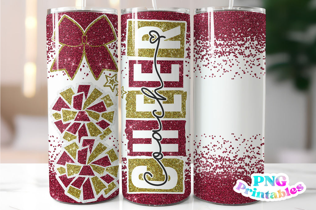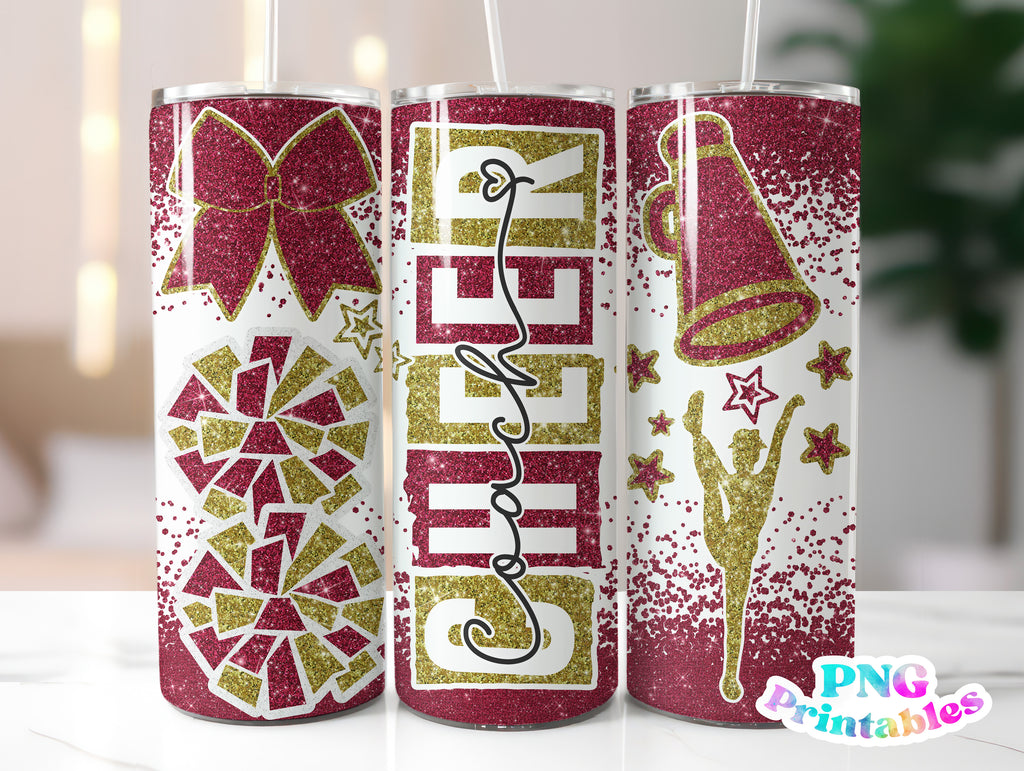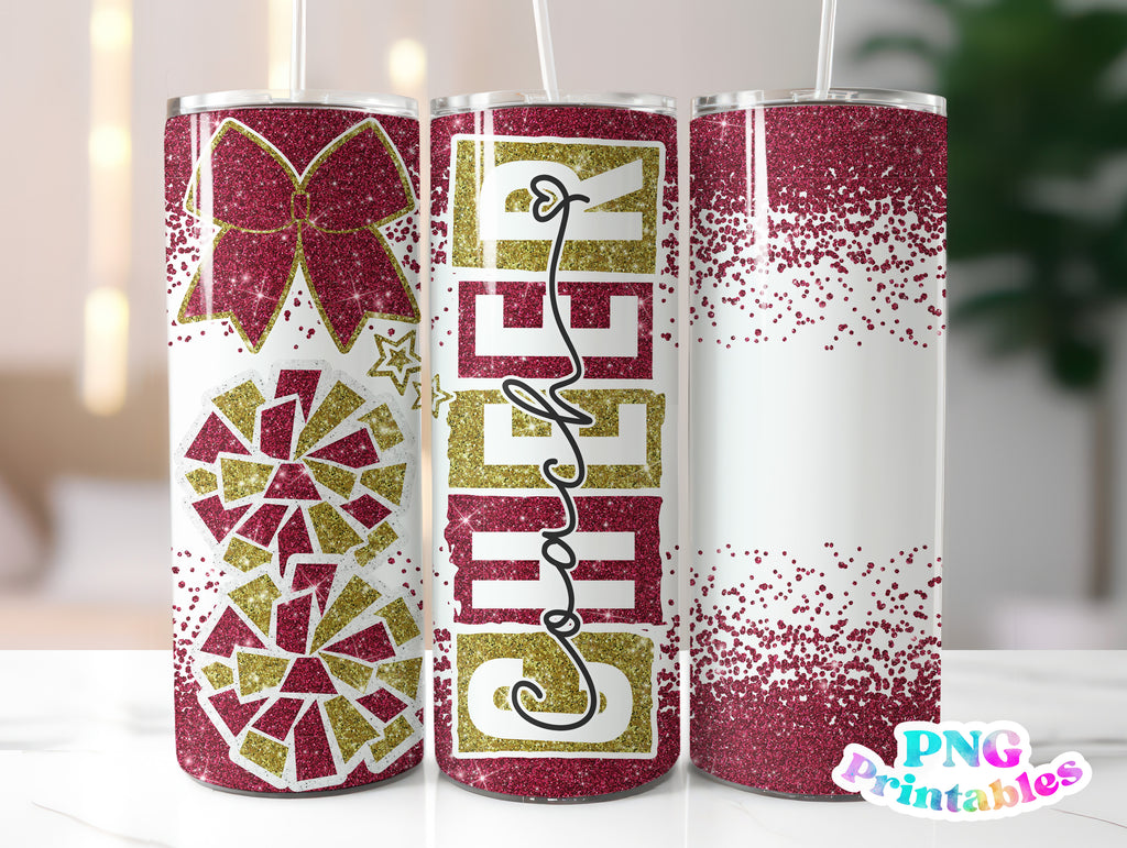 Cheer Coach Glitter 20 oz Skinny Tumbler png Design - Cheerleader Sublimation Tumbler Wrap - png File - Digital Download