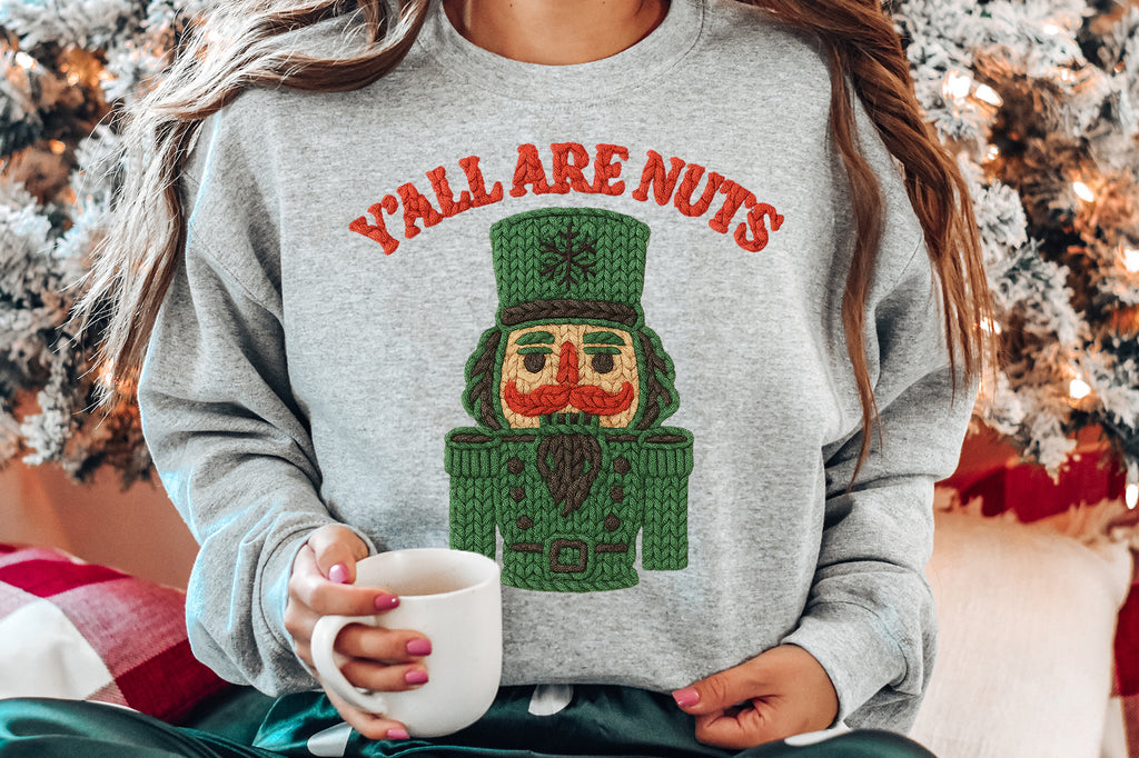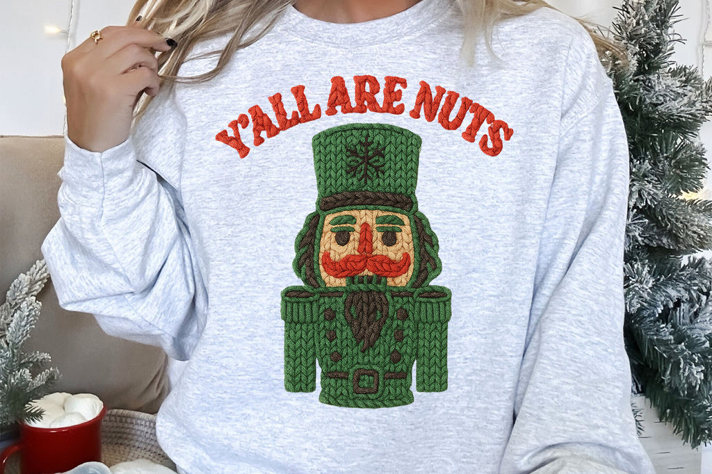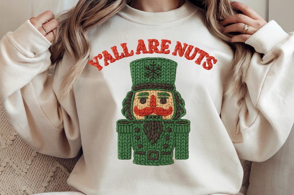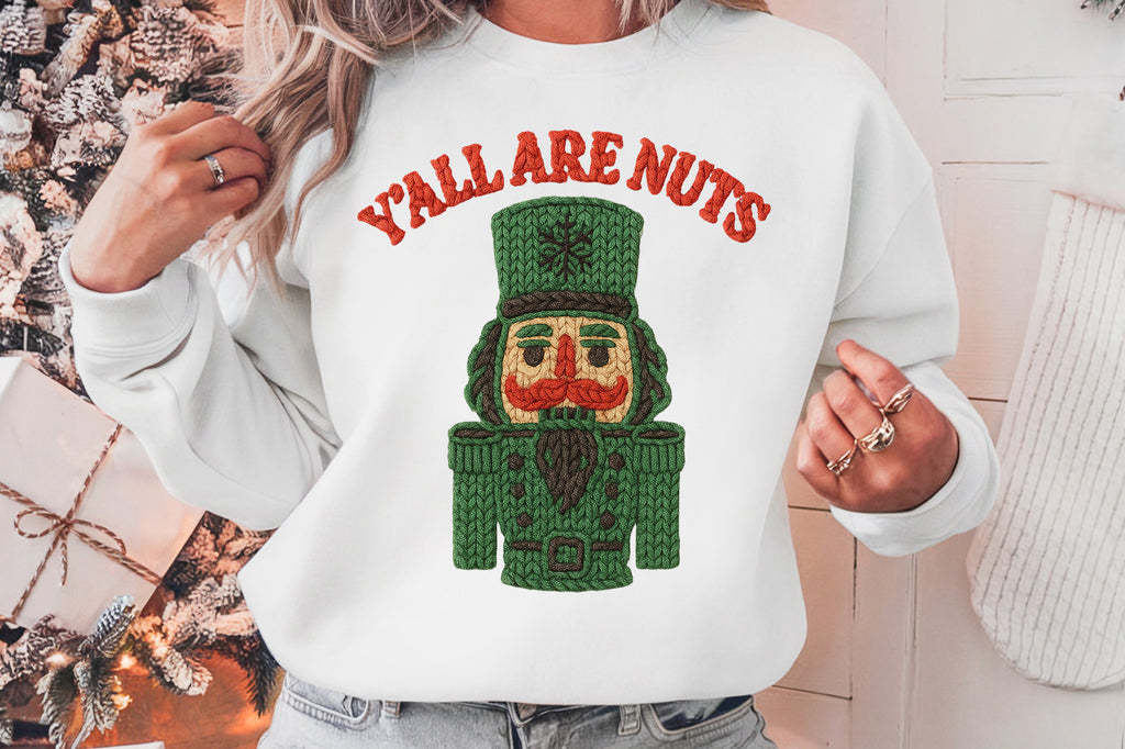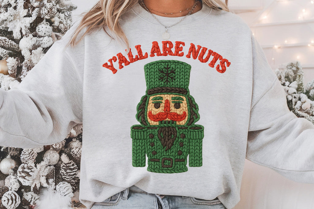 Faux Embroidery Y'all Are Nuts | Christmas Sublimation PNG