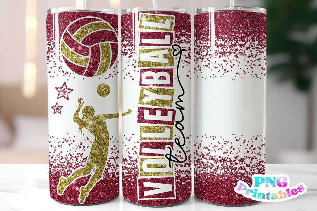 Volleyball Glitter 20 oz Skinny Tumbler png Design - Volleyball Team Sublimation Tumbler Wrap - png File - Straight only - Digital Download