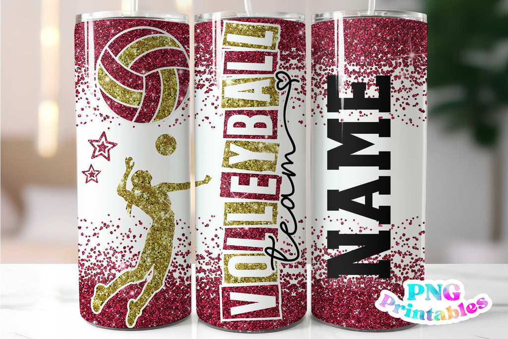 Volleyball Glitter 20 oz Skinny Tumbler png Design - Maroon and Gold