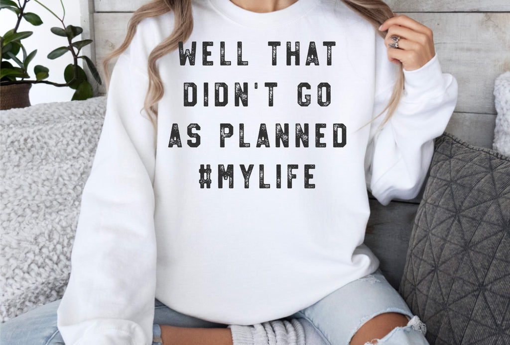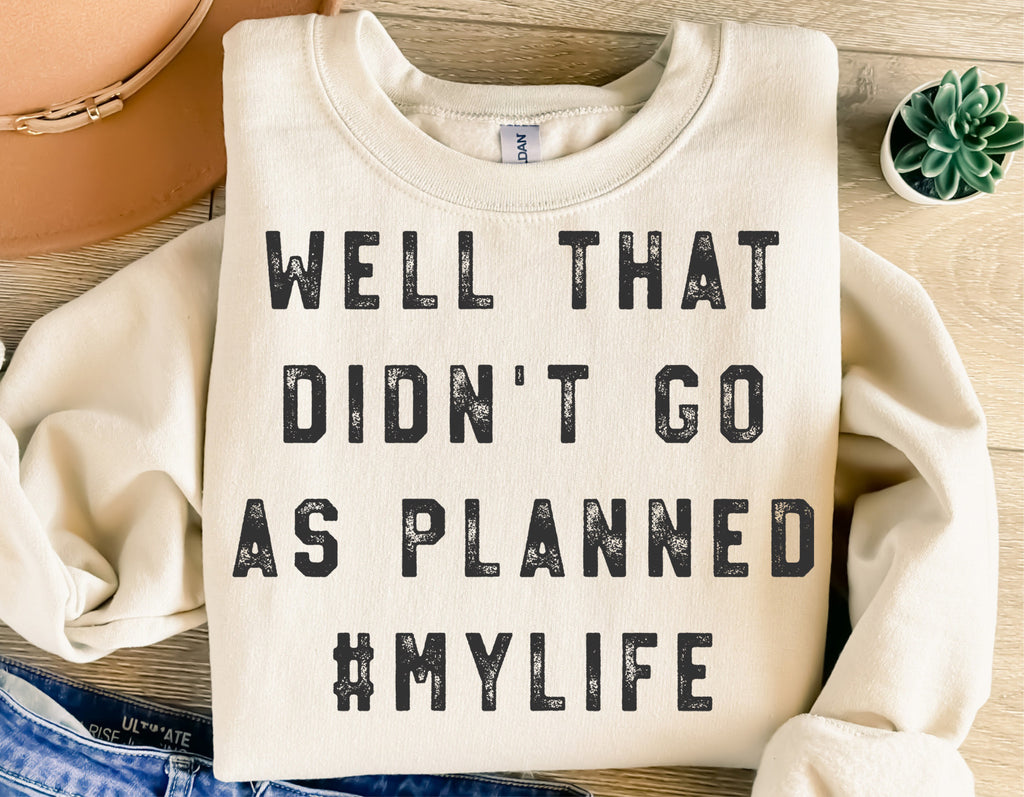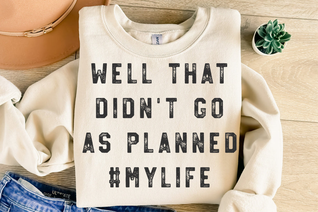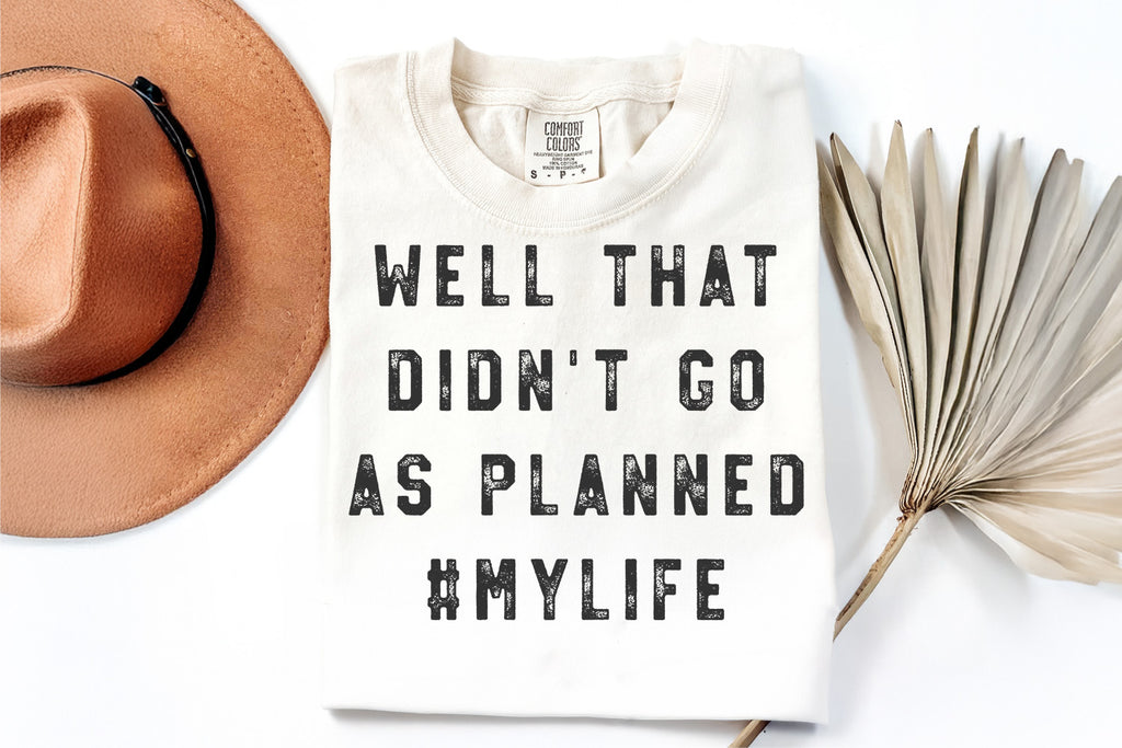 Add humor to your projects with this “Well That Didn’t Go As Planned #MyLife” design. This instant download comes in svg, png, dxf, and eps formats, perfect for Cricut, Silhouette, Glowforge, and other cutting machines.